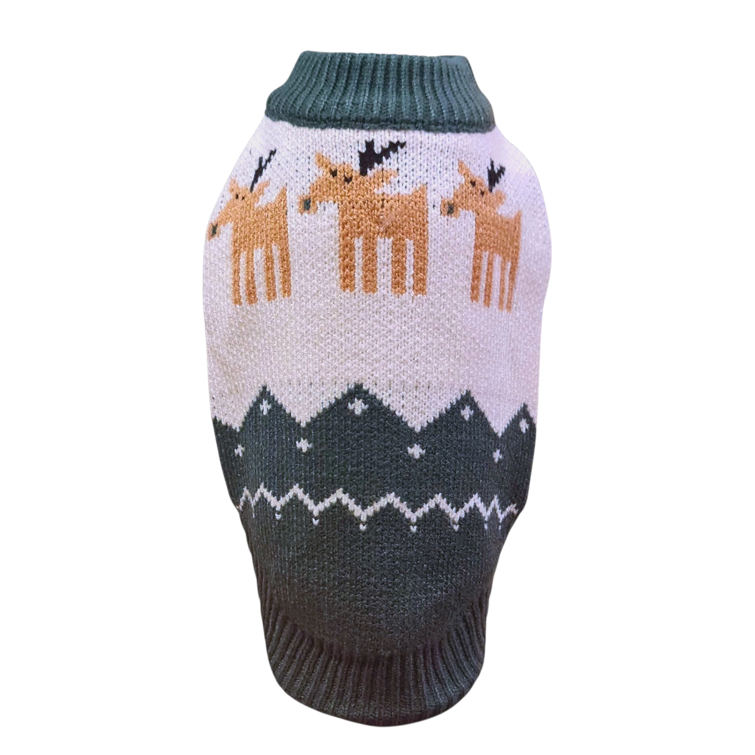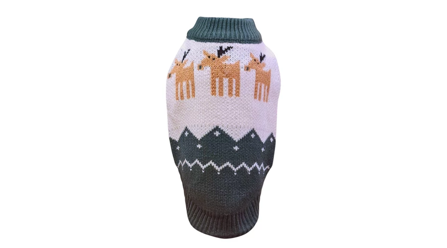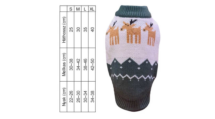 Karácsonyi kötött kutyapulóver – rénszarvas mintával M-es méret zöld