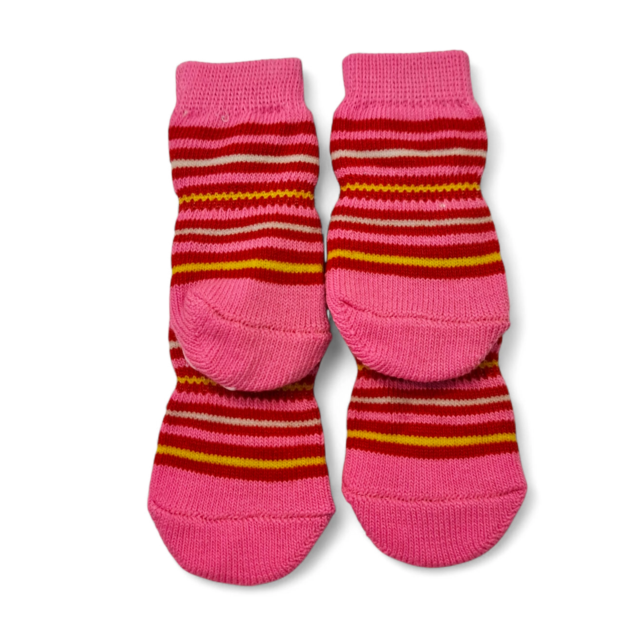 | Mintás zokni kutyáknak, pink-piros-sárga sávos mintával, L-es méret, 4 db/csomag | |
