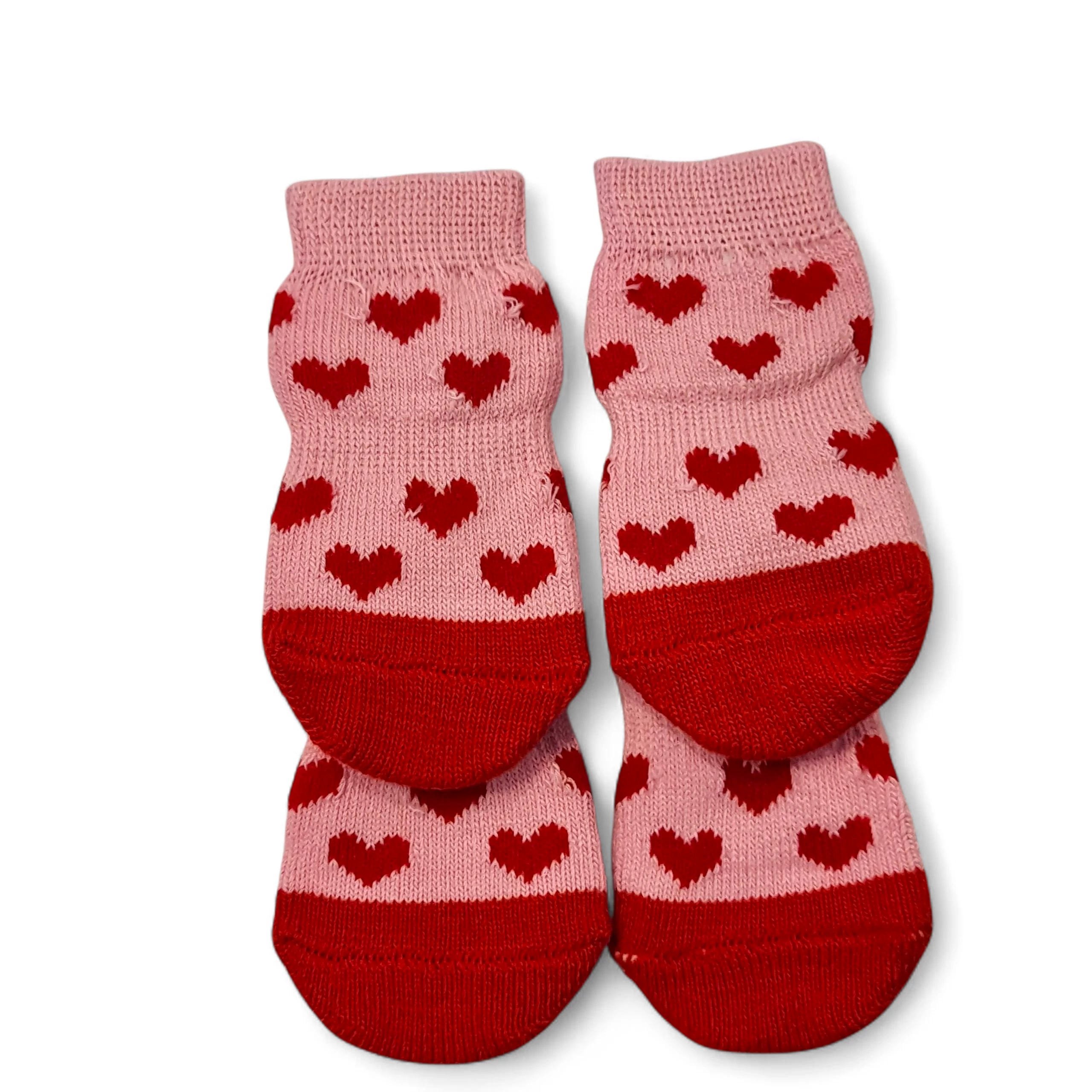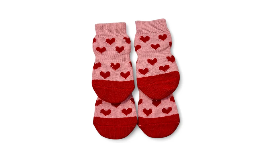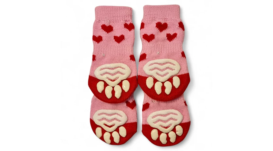 | Mintás zokni kutyáknak, pink-piros szíves mintával, L-es méret, 4 db/csomag | |