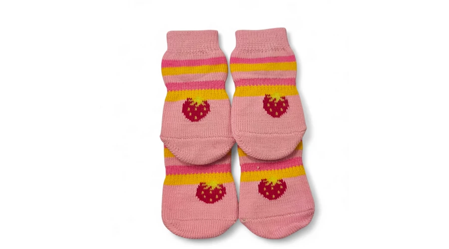 | Mintás zokni kutyáknak, pink eper mintával, M-es méret, 4 db/csomag | |