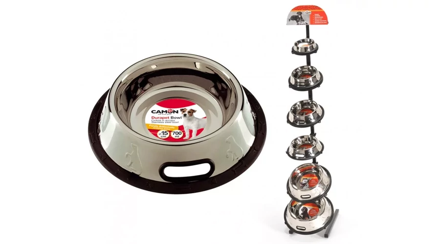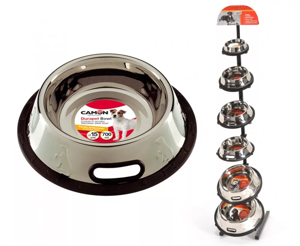 Széles alsó peremes rozsdamentes tál, csúszásgátló gumival 15 cm 660 ml |