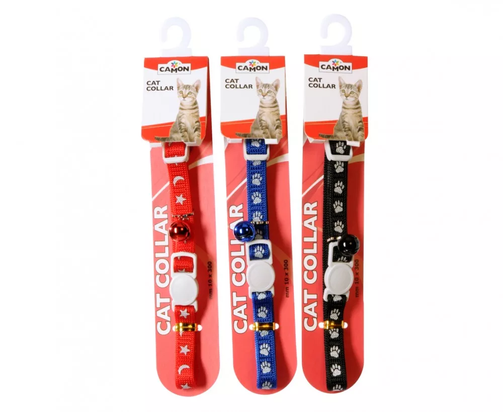 Nyakörv cicáknak rendkívül ellenálló nylonból, fényvisszaverő kialakítással, nagyobb biztonság érdekében éjjel. |